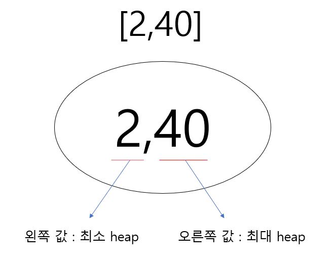 구간 히프는 Heap과 동일한 완전이진트리의 형태면서 각각의 노드는 최대 두개의 숫자로 구성 되어있다.